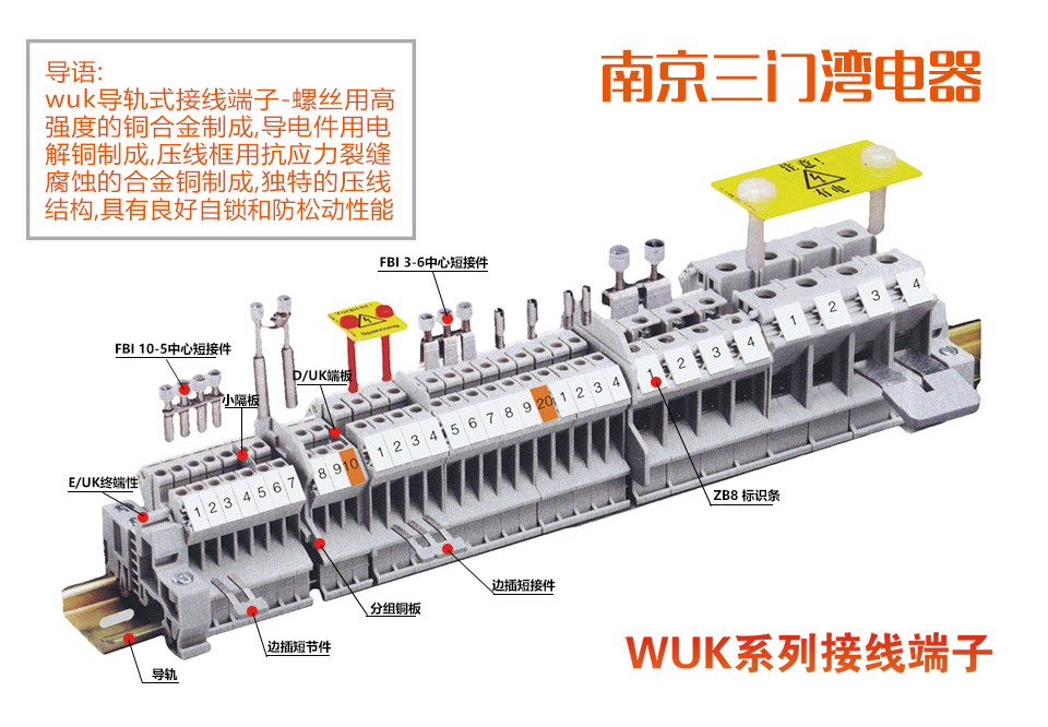 南京三门湾电器有限公司积累了几十年的生产配套经验,经改制于2005年在南京成立,专业致力于中、高档接线端子生产和销售。产品有日式组合型接线端子,欧式框压型组合接线端子、弹簧型端子及线路板PCB端子.线路板接插件等各种类型.生产大电流重载插座.数控机床电子手轮等,拥有几十个系列,上千个规格。公司部分产品已通过欧共体CE安全认证,广泛应用在电力、电子、电信、轨道交通、工厂自动化等诸多领域。